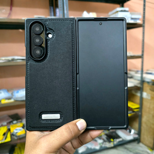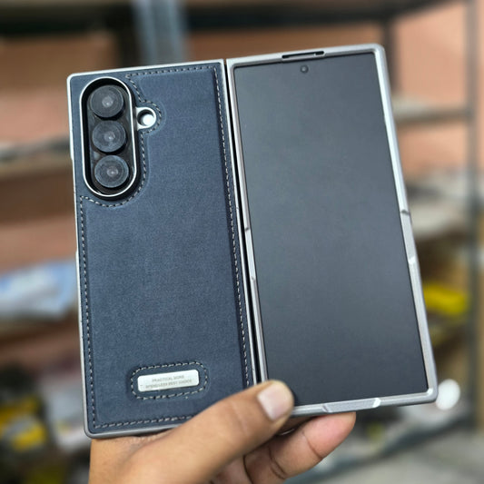 Samsung Galaxy Z Fold7 HBD Real Leather Case with Metal Stand - BlackRegular price Rs. 1,899.00Regular priceUnit price / perRs. 3,499.00Sale price Rs. 1,899.00Sale