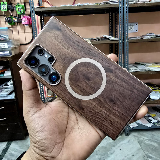 Samsung Galaxy S24 Ultra Wooden Metal Case, Metal Bumper Shockproof Case with Magsafe