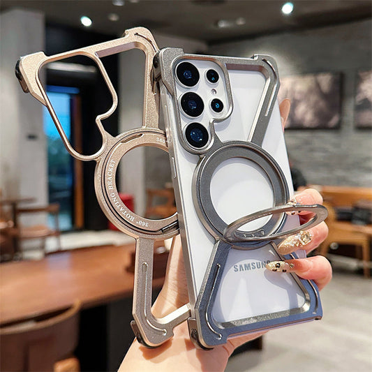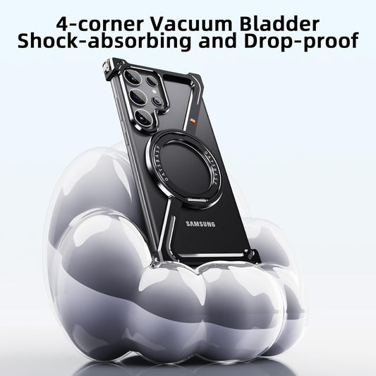 Samsung Galaxy S24 Ultra Metal Frameless Ultra Thin Hard Shockproof Magsafe Case with Magnetic Invisible Stand - Black