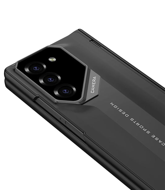 Samsung Galaxy Z Fold6 Anti-Fingerprint Sport Car Design Case with Hinge Protection Inbuilt Front Glass - Black