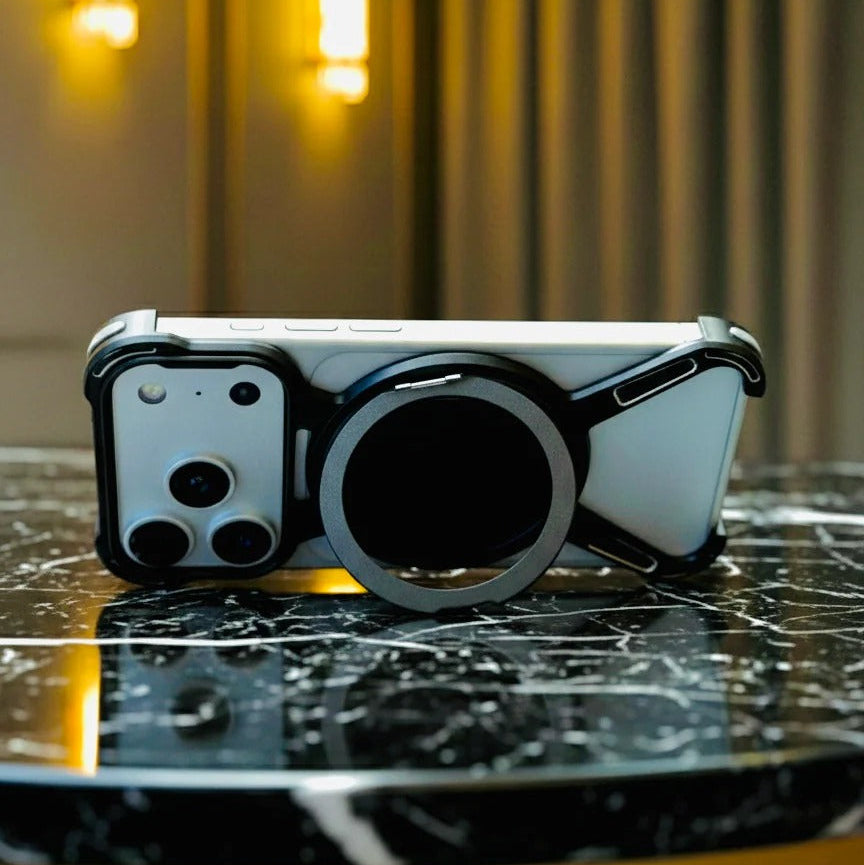 iPhone 17 Pro Metal X-Shape Frameless Bumper Case 360° Rotatable Stand with Magsafe