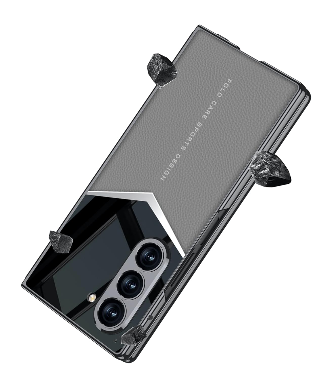 - Samsung Galaxy Z Fold6 GKK Glass Case, Ultra Electroplating V Shape Leather & Glass Case
